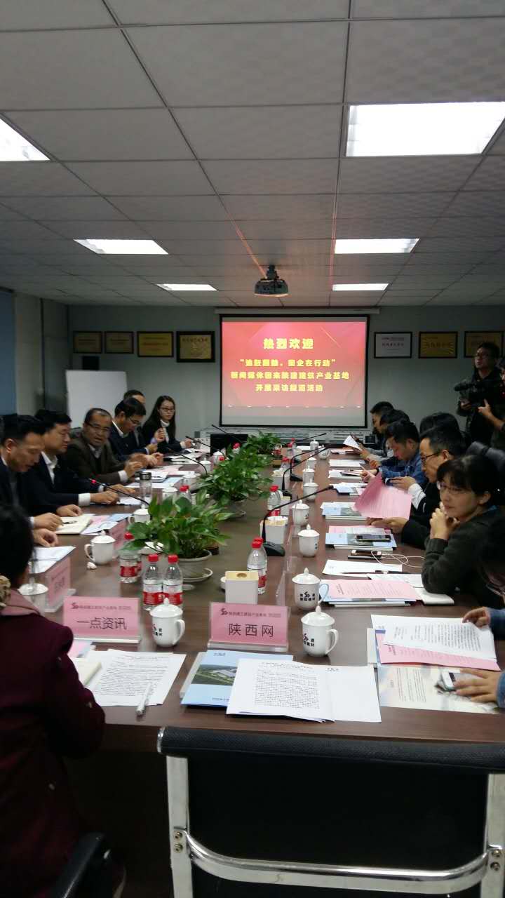 10月13日下午,“追趕超越,國企在行動(dòng)”媒體采訪團(tuán)走進(jìn)陜西建工集團(tuán),探訪我省追趕超越中的“陜建力量”。作為陜建產(chǎn)業(yè)轉(zhuǎn)型的先行者,陜建新型建材有限公司迎來了媒體團(tuán)的實(shí)地采訪報(bào)道。來訪媒體有新華網(wǎng)、鳳凰網(wǎng)、陜西日?qǐng)?bào)、陜西廣播電視臺(tái)要聞部、陜西廣播電視臺(tái)廣播新聞部、陜西廣播電視臺(tái)《絲路建設(shè)》、華商報(bào)、三秦都市報(bào)、中國網(wǎng)、西部網(wǎng)、陜西網(wǎng)、一點(diǎn)資訊、當(dāng)代陜西等。省國資委宣傳工作處副處長鄭恩強(qiáng),陜建集團(tuán)董事,陜建投資集團(tuán)黨委書記、董事長李衛(wèi)軍,陜建集團(tuán)黨委宣傳部副部長楊英龍以及投資集團(tuán)、新型建材等領(lǐng)導(dǎo)陪同活動(dòng)。