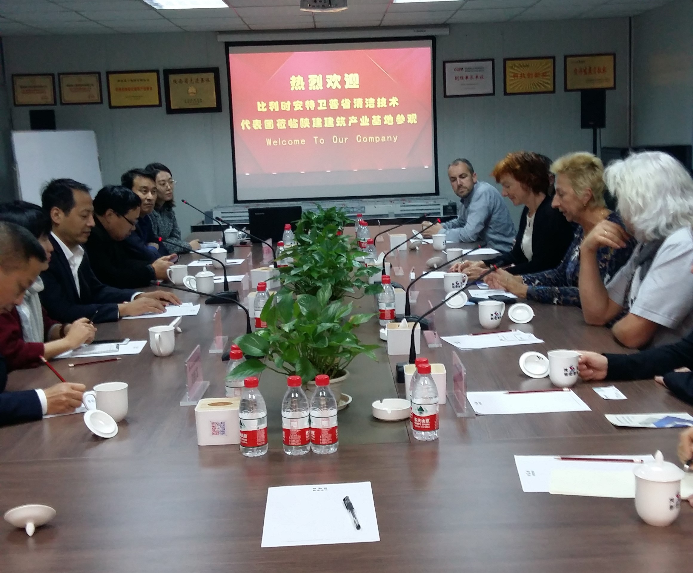 在隨后舉行的座談會上,來訪團觀觀看了基地建設視頻和交大創(chuàng)新港15號樓的安裝視頻,形象地了解了我司在裝配式建筑方面的發(fā)展情況。清潔技術協(xié)會主任Carine Van Hove女士表達了感謝之情,希望在今后清潔能源和綠色建筑的領域之內可以和新型建材建立緊密合作。
