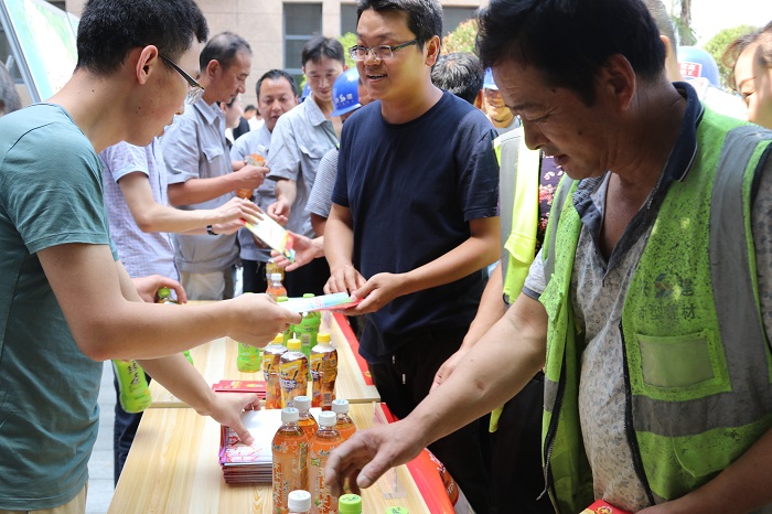活動現(xiàn)場廣大員工來到咨詢臺,對自己不了解的問題進行咨詢,并且積極參加安全生產(chǎn)燈謎答題活動。參加活動的員工或在拿著安全生產(chǎn)燈謎認真思索著答案或對著圖片展板看看哪里有隱患,通過活動,更加加深了員工對安全知識的了解和掌握,隨后,公司深入車間和一線職工中發(fā)放宣傳資料,與職工面對面互動交流,宣講安全生產(chǎn)方針政策,普及安全生產(chǎn)法律、法規(guī)和安全知識,同時開展了“送清涼囑安全”慰問活動,為員工發(fā)放了清涼飲料及防暑降溫用品,叮囑大家時刻注意安全,為安全生產(chǎn)再做新貢獻。