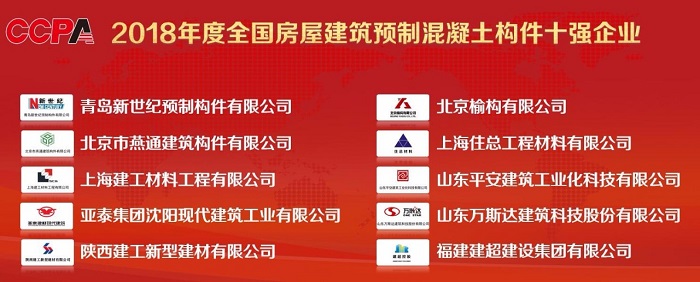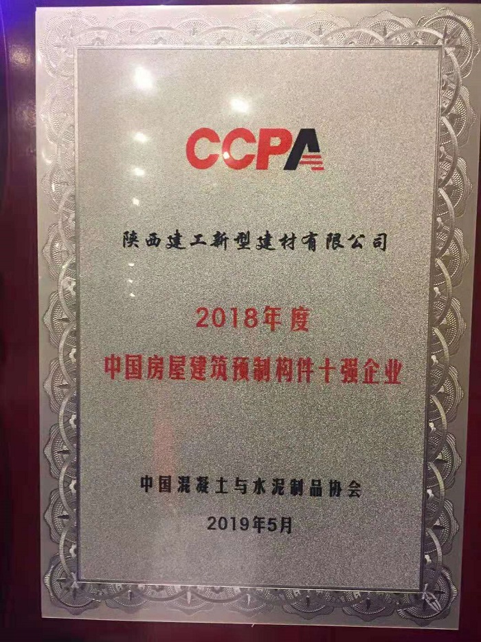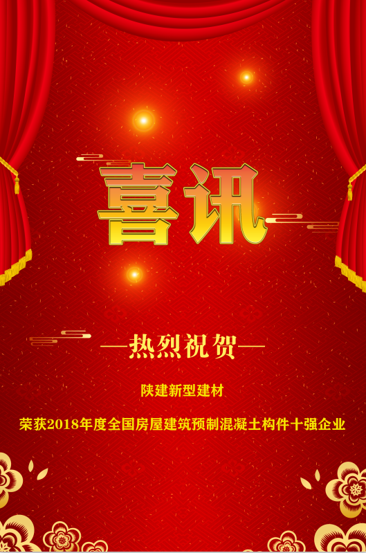 | 喜報∣陜建新型建材榮獲2018年度全國房屋建筑預(yù)制混凝土構(gòu)件十強企業(yè) |