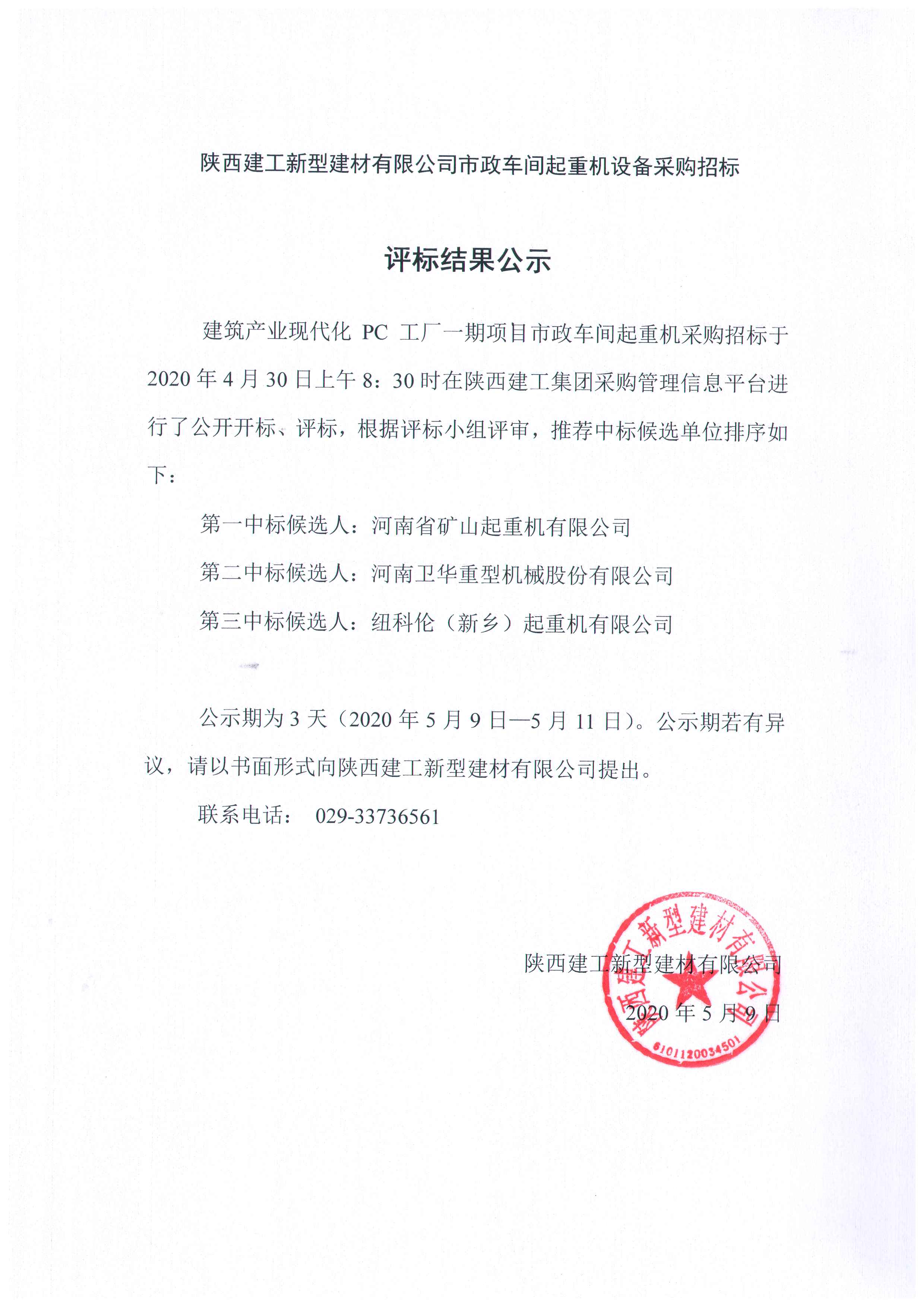 | 市政車間起重機(jī)設(shè)備采購招標(biāo)評標(biāo)結(jié)果公示 |