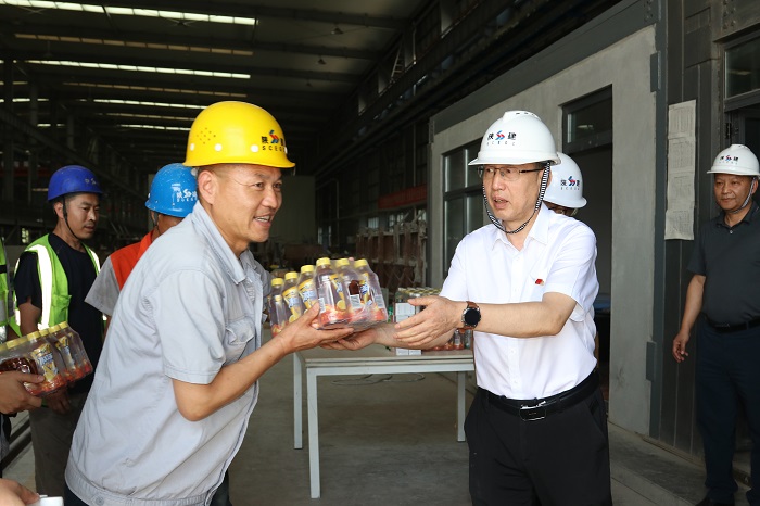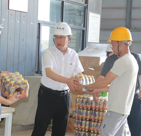 時值盛夏,驕陽似火,頂著烈日奮斗在一線的職工們,仍然堅守在工作崗位上,為切實做好夏季防暑降溫工作,保證一線職工生產(chǎn)作業(yè)安全和身體健康,7月2日上午,陜建投資集團黨委副書記、紀(jì)委書記、工會主席王拯民赴陜建新型建材公司進行慰問,為高溫期間奮戰(zhàn)在生產(chǎn)一線的職工送去關(guān)懷和“清涼”。 王拯民書記深入車間向職工們發(fā)放了清涼飲料、茶葉、香皂、花露水等防暑降溫物品,向職工們轉(zhuǎn)達了集團對大家的關(guān)心和問候,并叮囑公司合理安排高溫天氣下工人的工作計劃,科學(xué)安排作業(yè)時間,妥善安排好工人的生活飲食,在促生產(chǎn)搶進度的同時,抓好職工的生命健康安全。