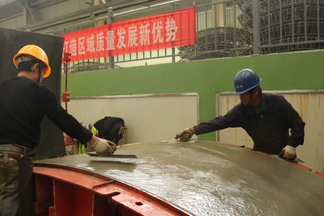 為進(jìn)一步提升生產(chǎn)效率,車間采取生產(chǎn)前置措施,讓工人精心做好生產(chǎn)前的各項準(zhǔn)備工作,提前熟悉項目技術(shù)圖紙和生產(chǎn)要求,統(tǒng)籌優(yōu)化生產(chǎn)排產(chǎn)、模臺流轉(zhuǎn)、鋼筋加工、構(gòu)件堆疊和裝車方式等生產(chǎn)流程,推動生產(chǎn)線最大化利用。同時,狠抓安全生產(chǎn)管理,多次開展安全生產(chǎn)專項教育培訓(xùn),組織安全隱患大排查大整治活動,保證生產(chǎn)工作安全有序進(jìn)行。 公司始終將產(chǎn)品質(zhì)量作為提升企業(yè)發(fā)展競爭力的重要載體,從項目圖紙設(shè)計會審到模具設(shè)計生產(chǎn)到產(chǎn)品生產(chǎn)及產(chǎn)品出廠,每一個環(huán)節(jié)都嚴(yán)格把好質(zhì)量關(guān)。